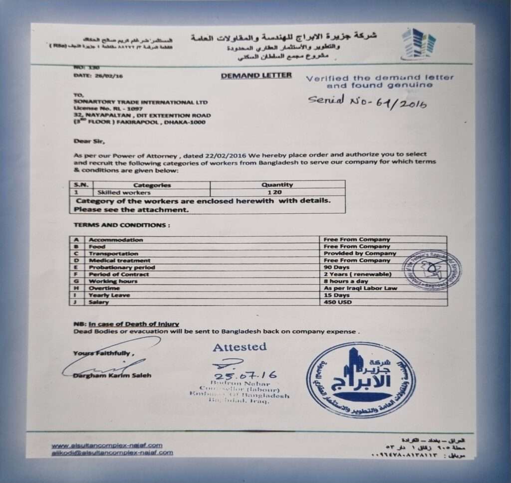Sonartory Trade International Ltd. pride itself to introduce as one of the leading Recruiting Agents in Bangladesh having years of experience in connection with exporting manpower in various countries around the world. Expediting mobilieation of manpower business and organizing other tours and travels Sonartory Travels International holding a reputable travel Agency by its own as a sister concern.